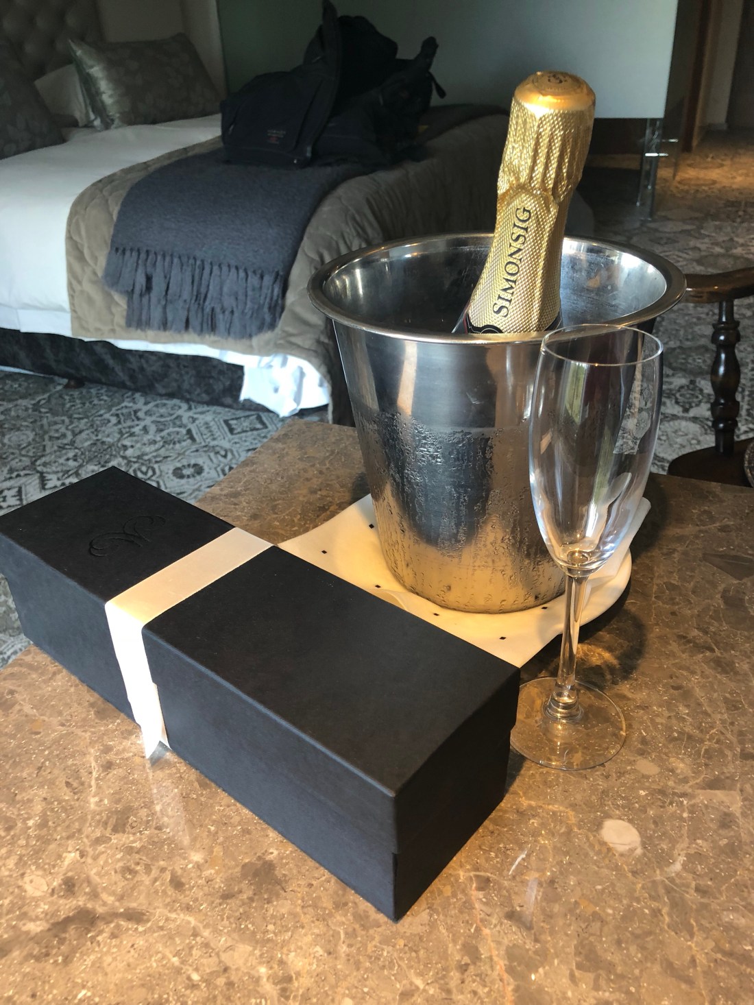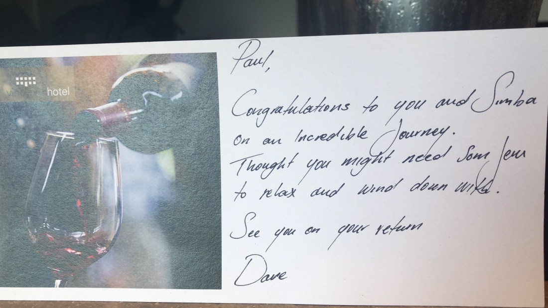 …. and just to round off the day, wine, champagne, and nice notes from the hotel and my good friend, Dave Cornick……
