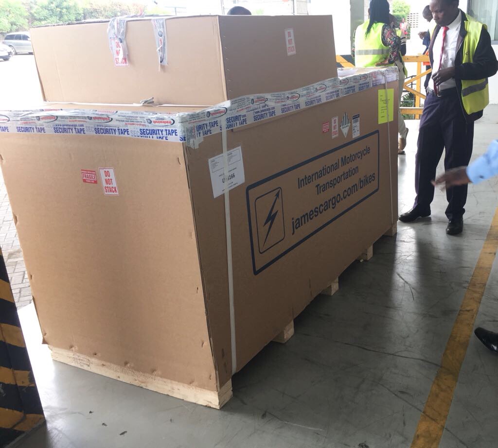 Bikes being transported are normally left crated and boxed so that the client can inspect it and verify that nothing has been interfered with since it was packed up in London.