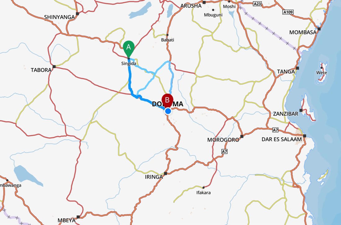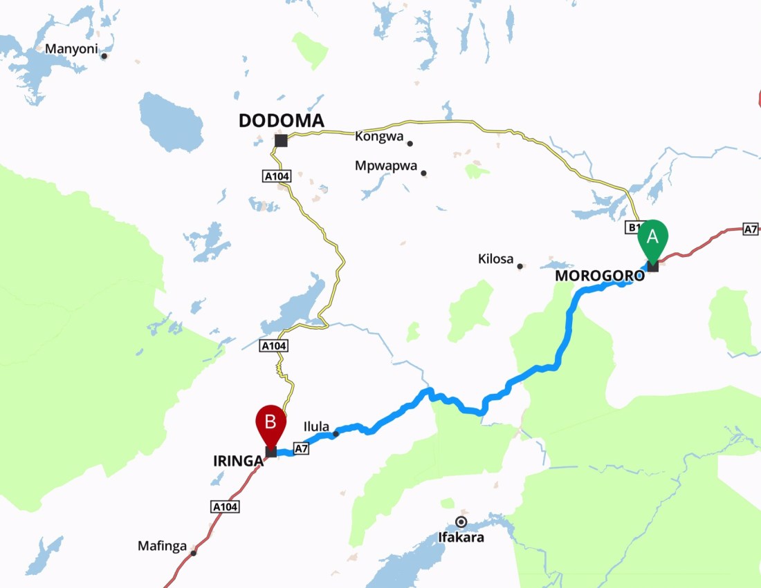 There is a spectacular waterfall but it was hard to get a good angle for a photo. However it was opportune that I stopped because I bumped into a guy from Manchester who was traveling with his Ugandan wife. He advised me not to cut south from Dodoma to Iringa but to take the longer route by Morogoro. Looks like another day forfeited but that would be preferable to getting stuck in the middle of nowhere.
